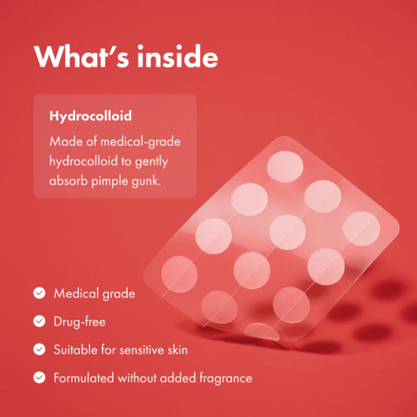 Powerful hydrocolloid action draws out pus, oil, and impurities to visibly reduce blemishes